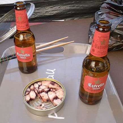 シャワーの後、ダンナ特製の肉団子つまみにビールを飲む